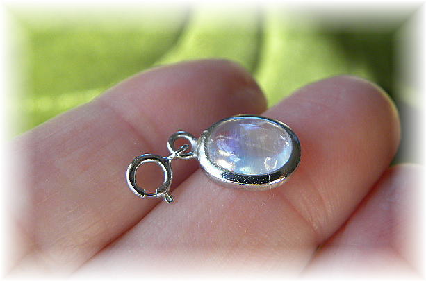作業完了~☆オレンジ~ブルーのシラーが美しい高品質なムーンストーンのルースチャーム。